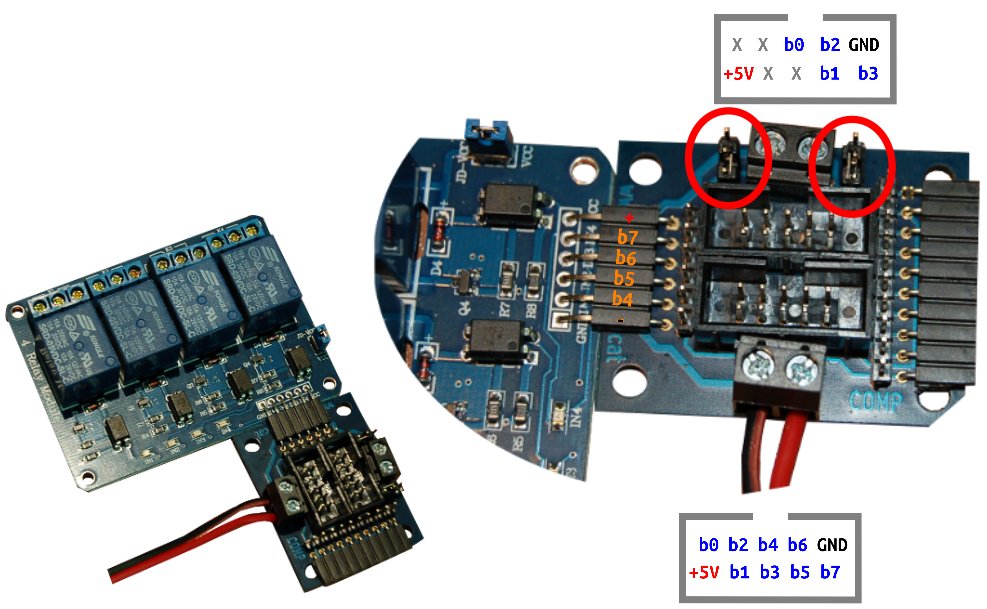 Conexión con placa de 4 relés.